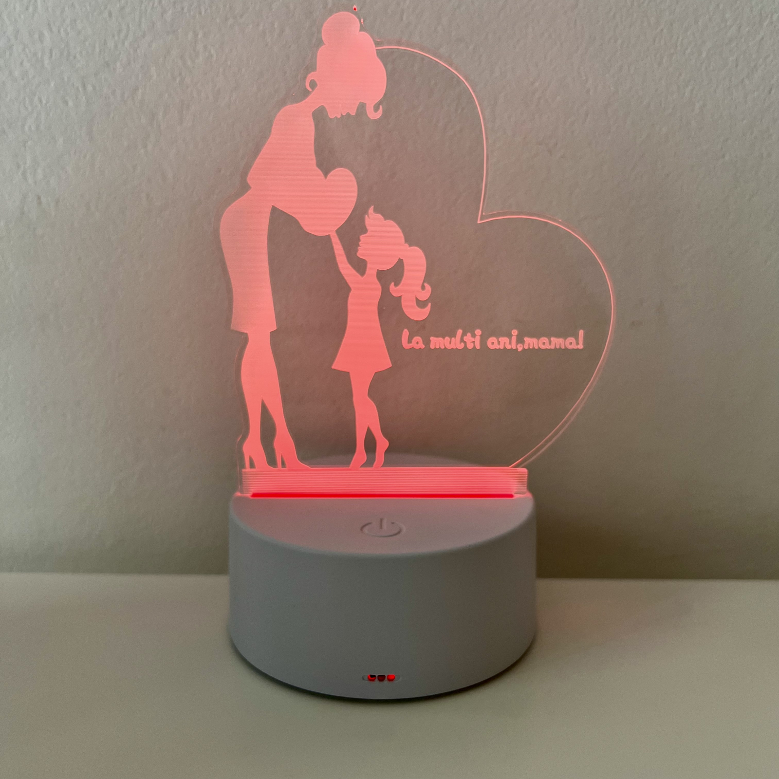 O lampă de veghe 3D cu LED-uri este un cadou perfect, mai ales cu un mesaj special precum "La mulți ani, mama!".