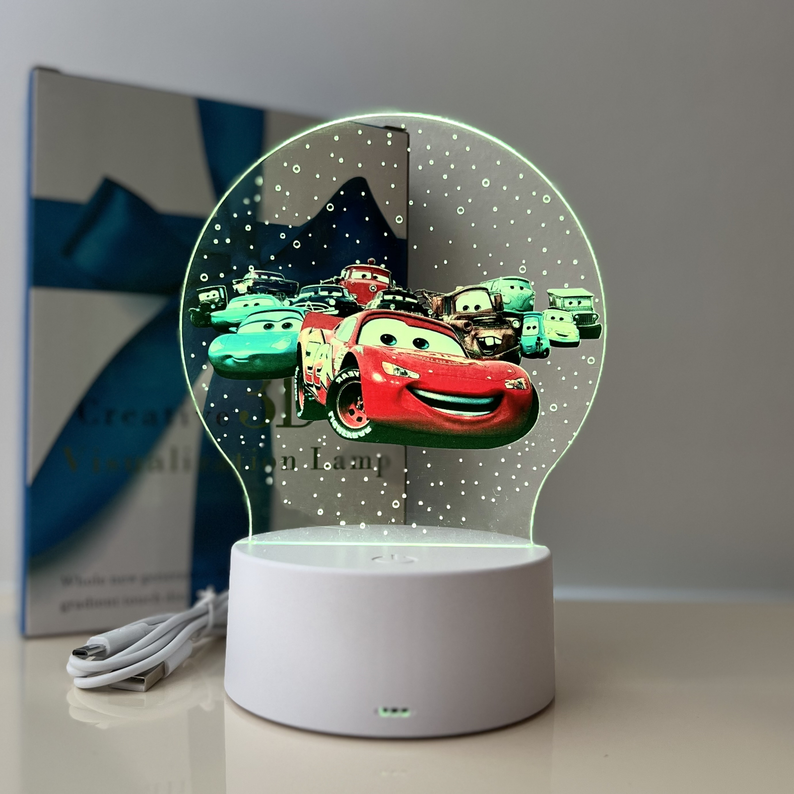 Lampa de Veghe LED , personalizata cu masinutele din desenele animate Cars - un cadou perfect pentru orice fan al acestei serii! Această lampă nu doar că aduce o notă de personalitate și luminozitate în spațiile tale, dar oferă și un aspect captivant, ideal pentru dormitor, spatiu de joaca sau birou.
