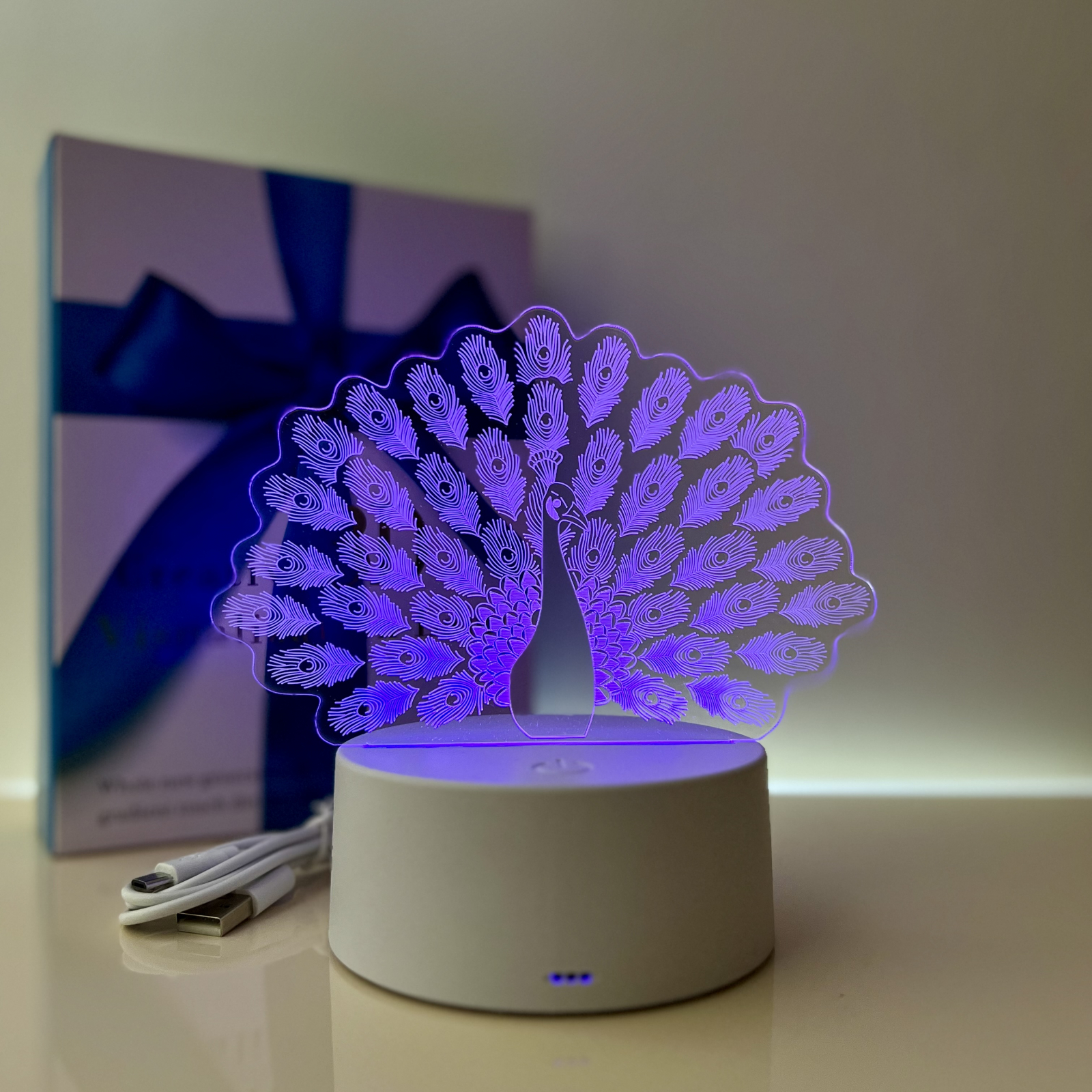 Lampa de veghe 3D LED, personalizata Paun